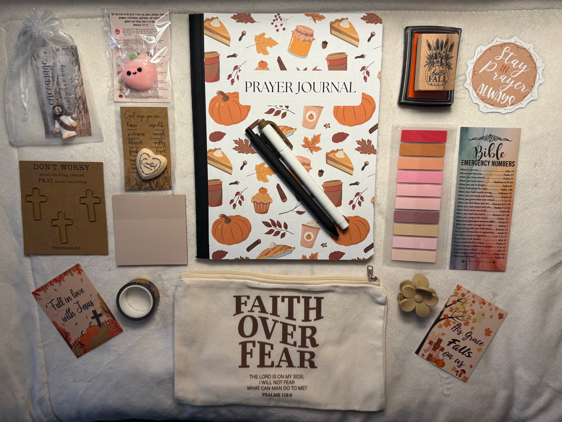 This fall devotional bundle includes one handmade faith journal and 12 surprise stationery items. Ideal for Bible study, gratitude journaling, and cozy fall gifts. Each bundle is hand-packed with prayer and intention. Every order is a little surprise!